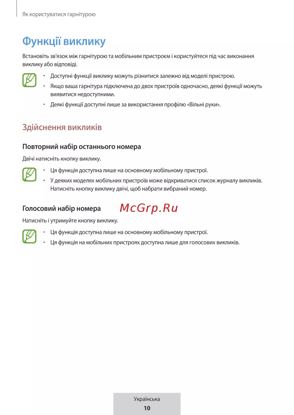 Доступні функції виклику можуть різнитися залежно від моделі пристрою.