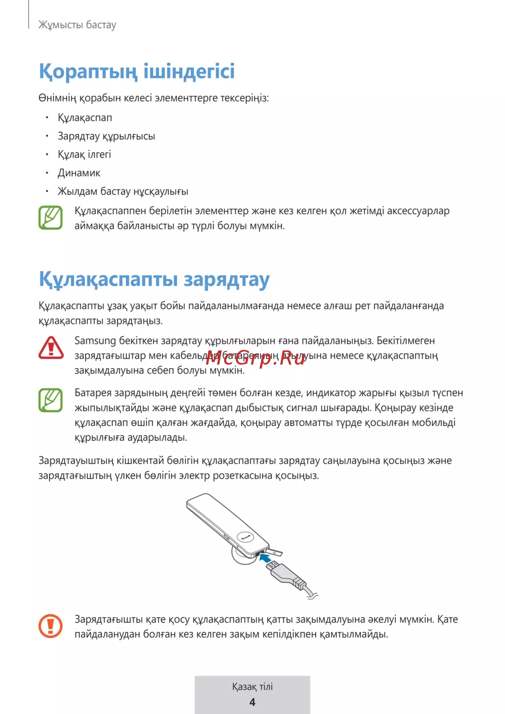 Зарядтағышты қате қосу құлақаспаптың қатты зақымдалуына әкелуі мүмкін. Қате