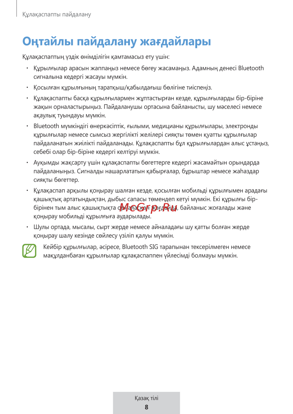 пайдаланатын жиілікті пайдаланады. Құлақаспапты бұл құрылғылардан алыс ұстаңыз,