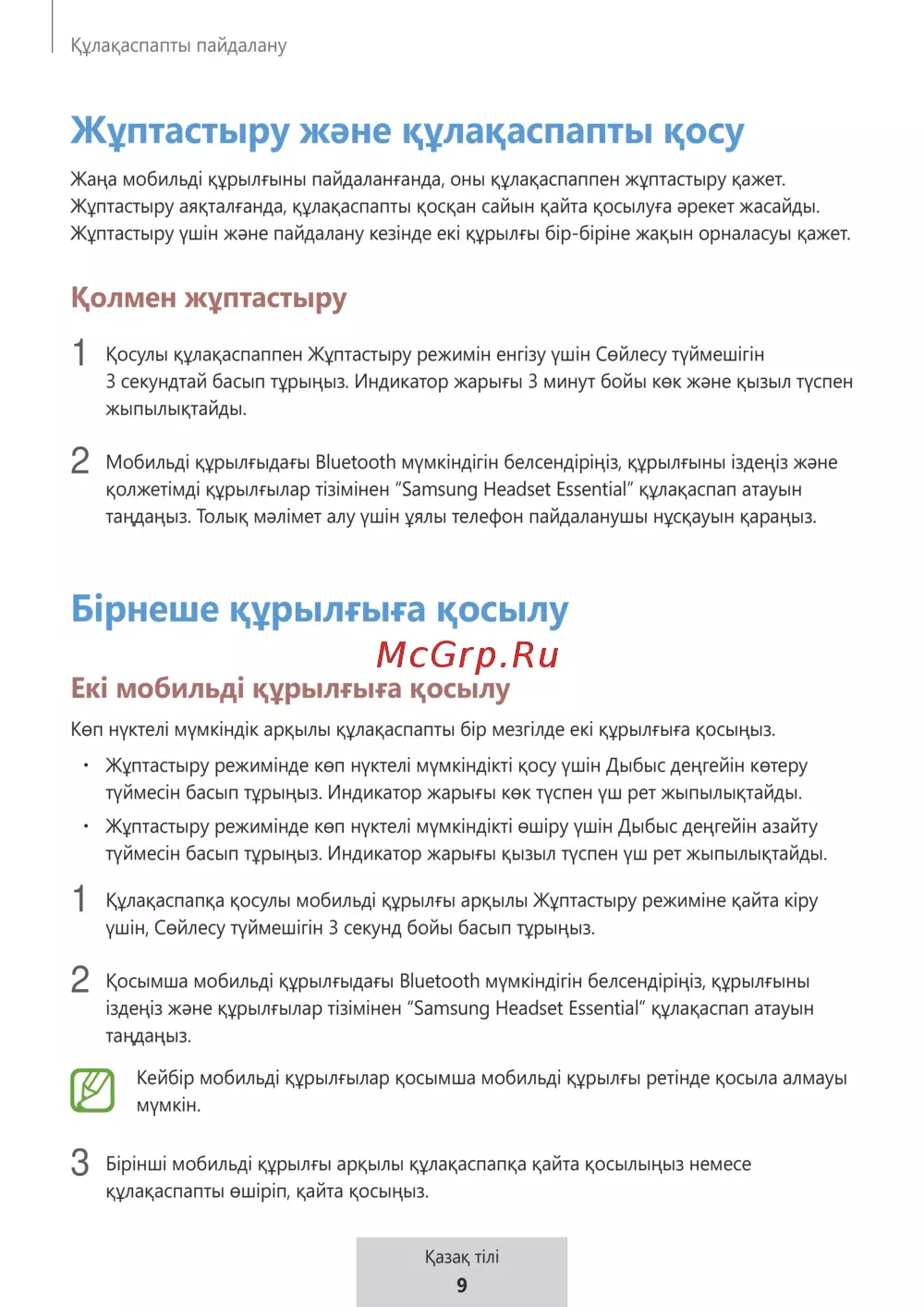 Жаңа мобильді құрылғыны пайдаланғанда, оны құлақаспаппен жұптастыру қажет.