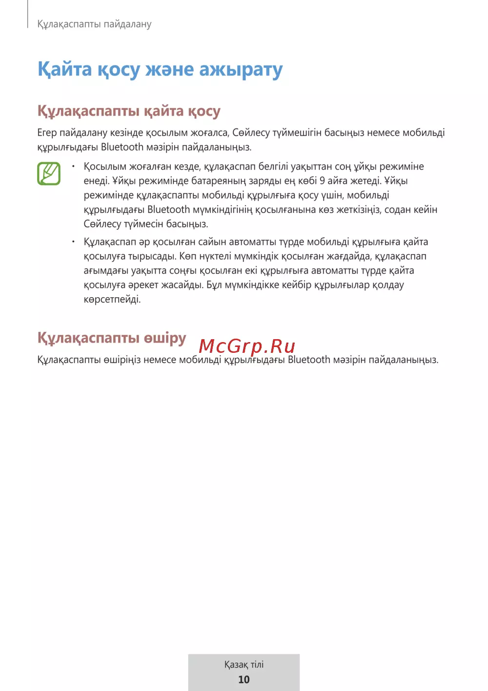 Құлақаспапты өшіріңіз немесе мобильді құрылғыдағы Bluetooth мәзірін пайдаланыңыз.