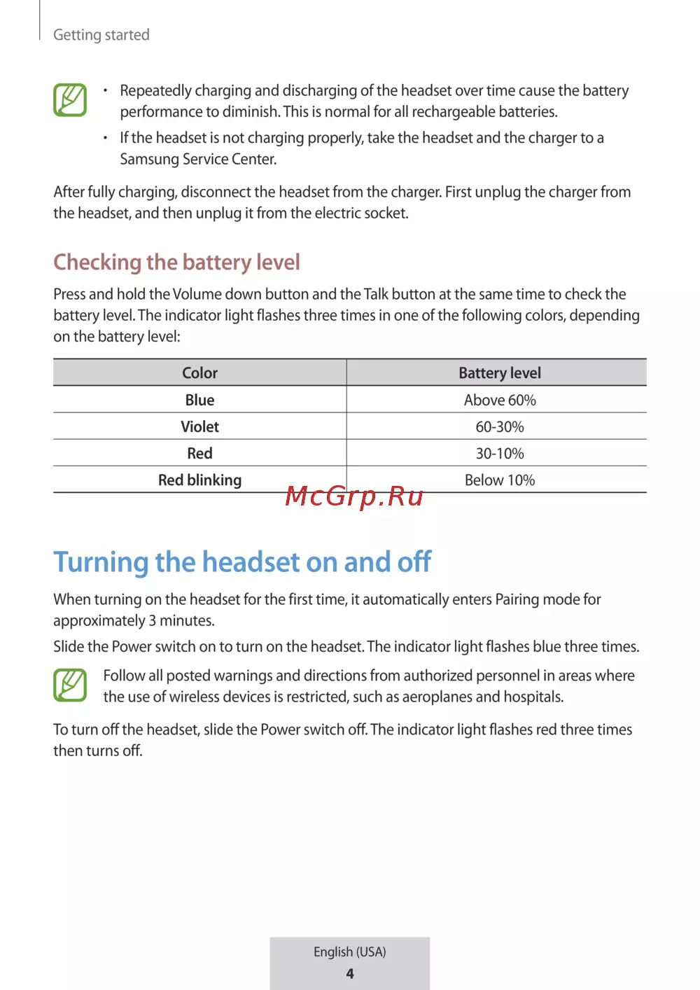 Samsung EO-MG920 [481/594] Turning the headset on and off