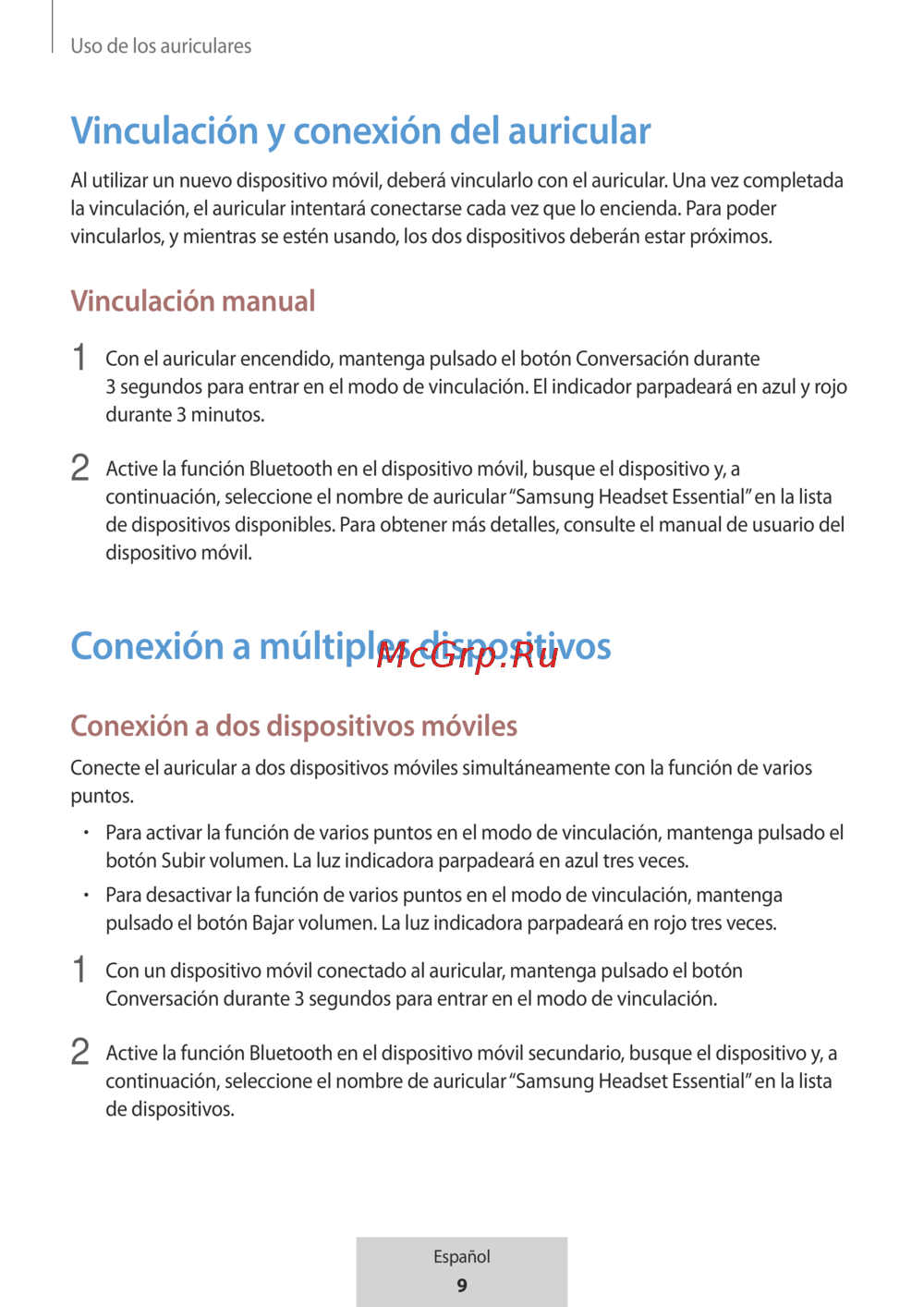 Vinculación y conexión del auricular