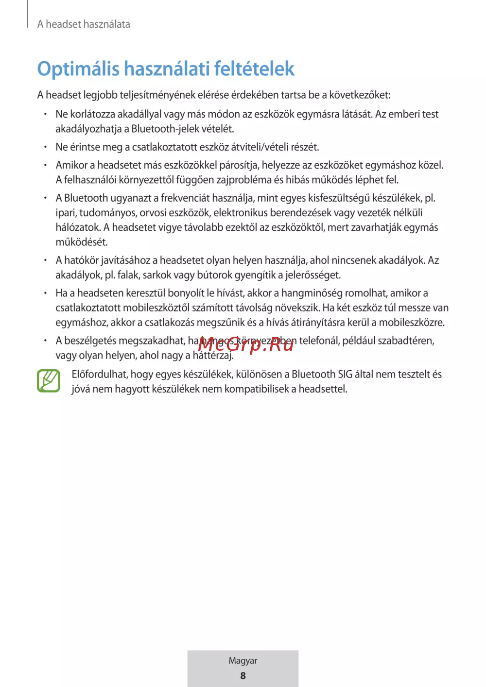 hálózatok. A headsetet vigye távolabb ezektől az eszközöktől, mert zavarhatják egymás