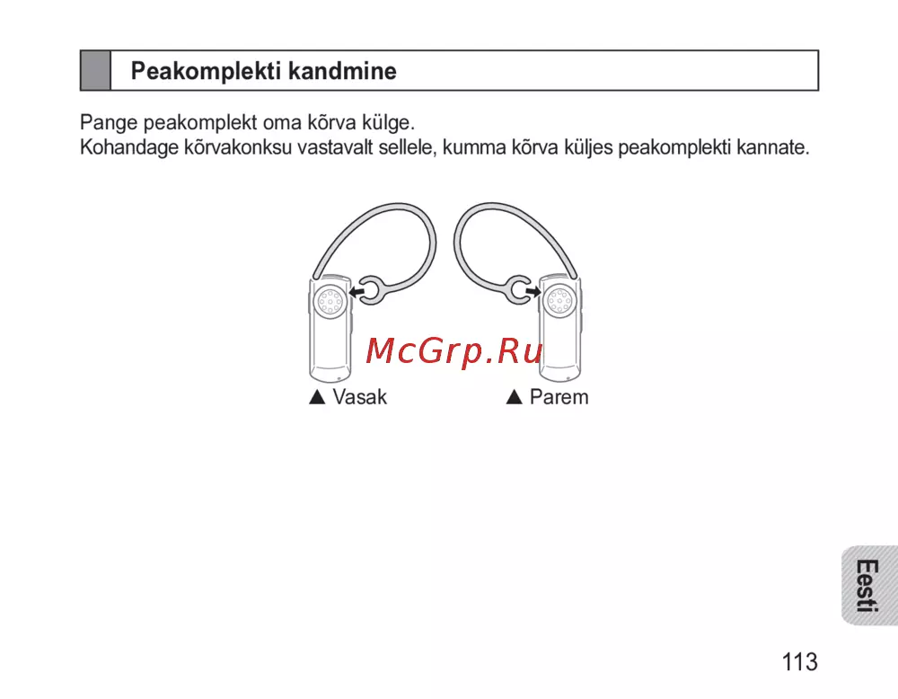 Samsung HM1000 [115/132] Peakomplekti kandmine