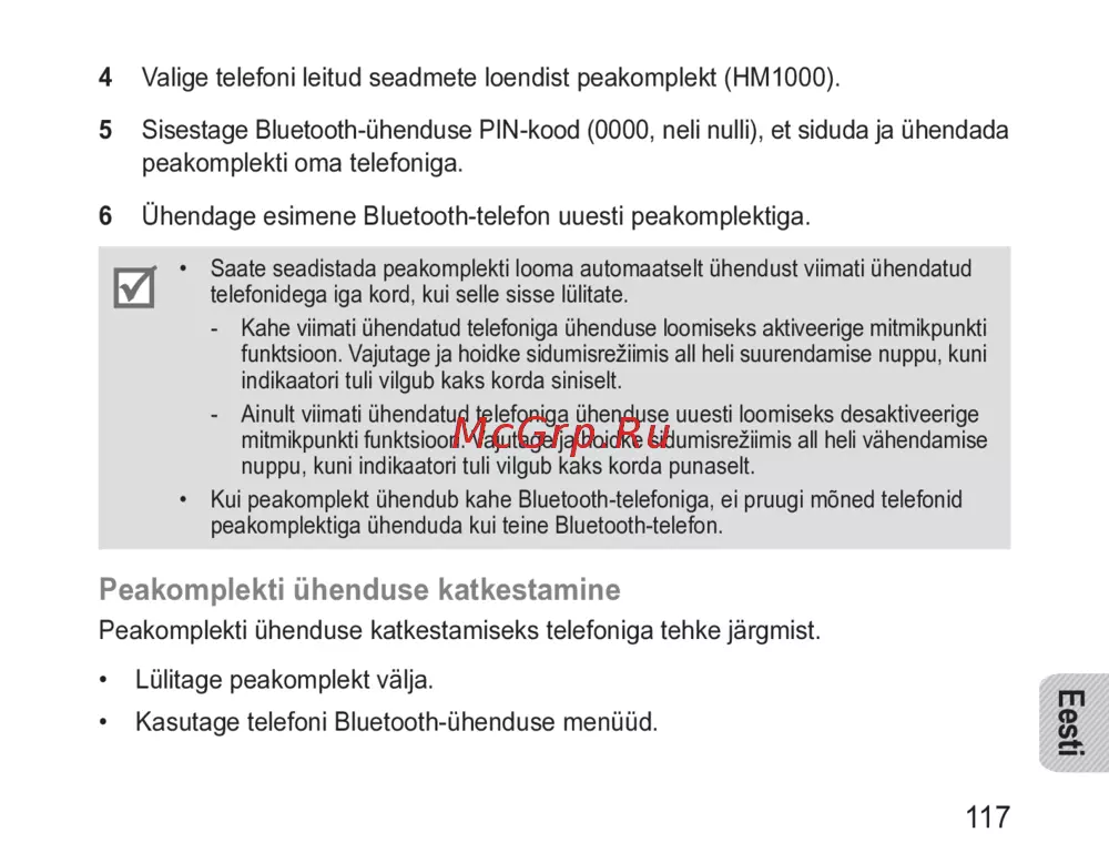 ![Samsung HM1000 [119/132] Peakomplekti ühenduse katkestamine](/views2/1988186/page119/bg77.png)