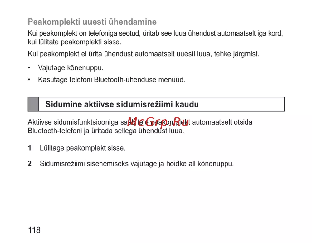 - Peakomplekti sidumine ja ühenduse loomine telefoniga p.117