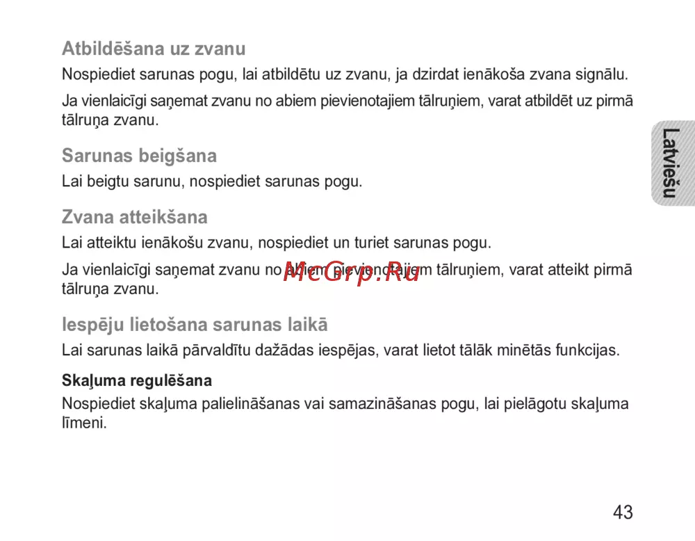 Nospiediet sarunas pogu, lai atbildētu uz zvanu, ja dzirdat ienākoša zvana signālu.