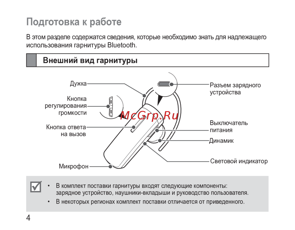 - Перед началом работы с гарнитурой ознакомьтесь с настоящим руководством сохраните его для получения справочных сведений в будущем имеющиеся в настоящем руководстве изображения могут не полностью соответствовать внешнему виду реального устройства p.4