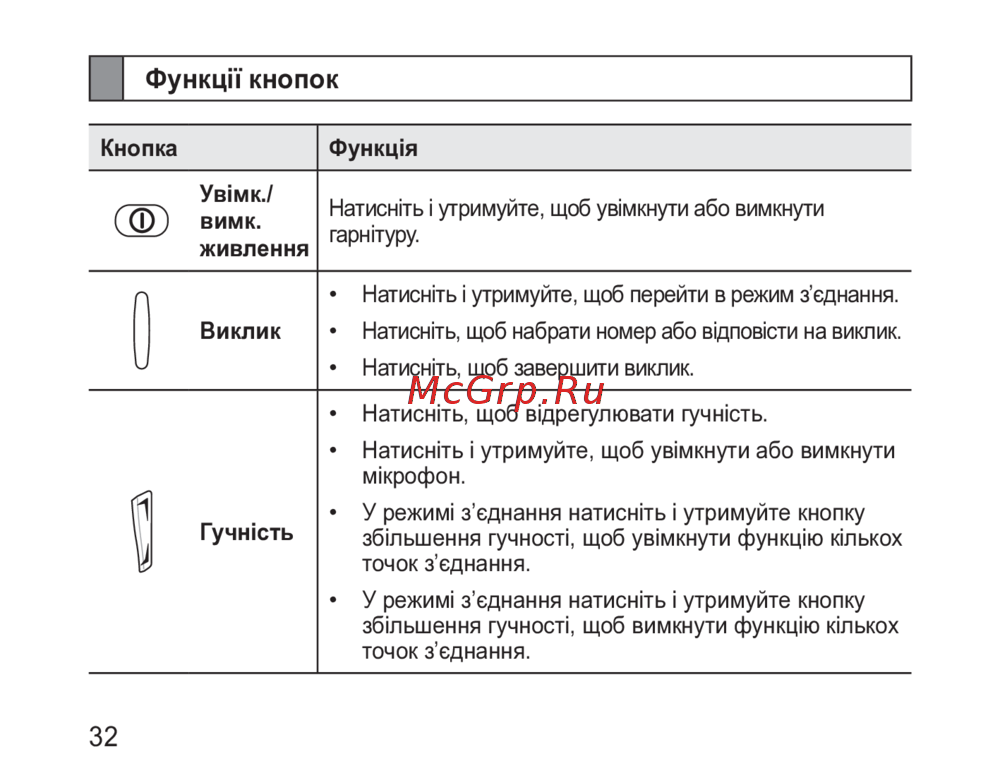Samsung BHM1600 [34/133] Функції кнопок
