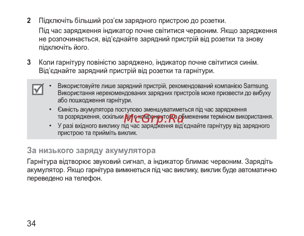 Samsung BHM1600 [36/133] За низького заряду акумулятора