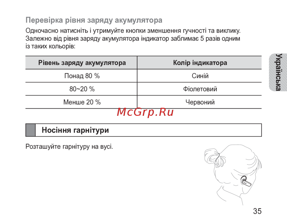 - Ознайомтесь з усіма застережними заходами перед використанням гарнітури для забезпечення безпечного і належного використання p.32