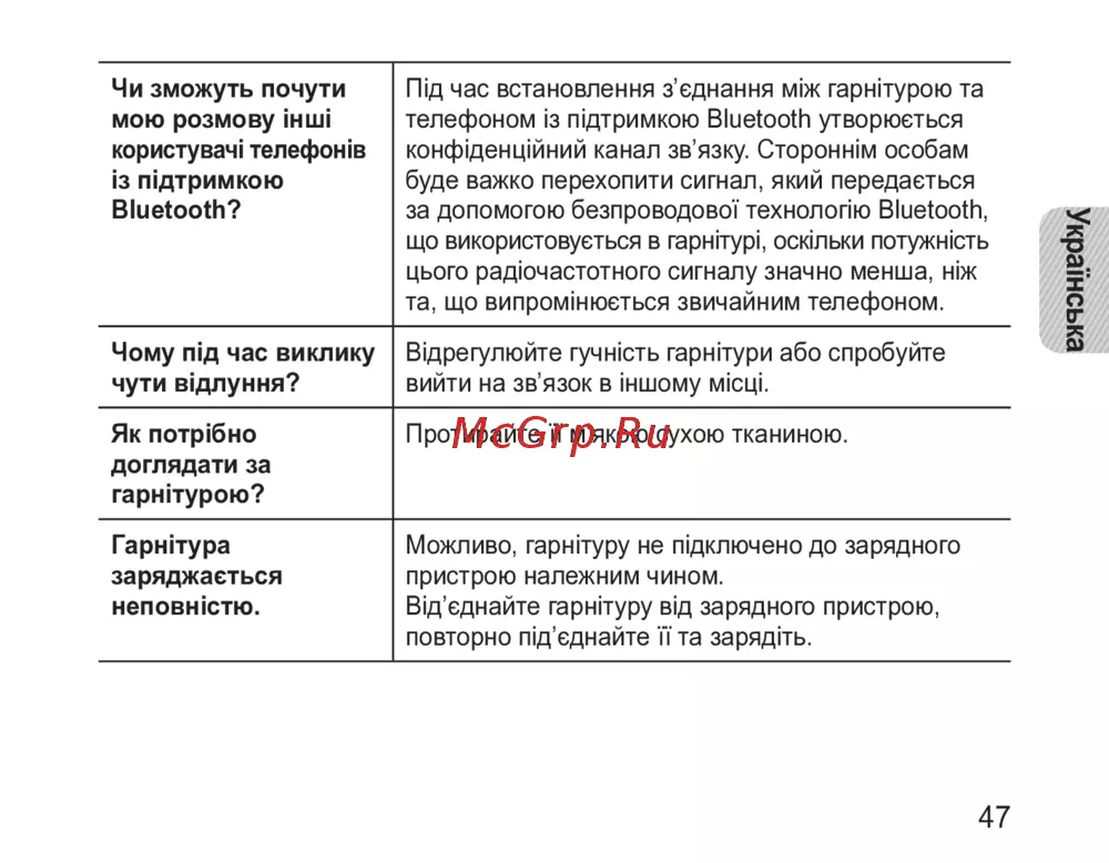 - В этом разделе содержатся сведения которые необходимо знать для надлежащего использования гарнитуры bluetooth p.7