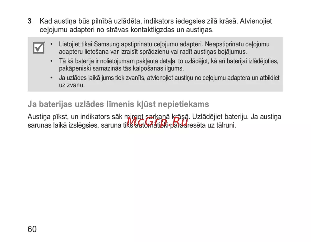 Lietojiet tikai Samsung apstiprinātu ceļojumu adapteri. Neapstiprinātu ceļojumu
