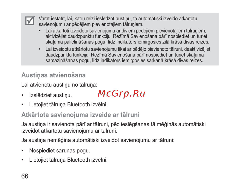 - Jei ausinė yra susieta su telefonu jis automatiškai bandys prisijungti iš naujo kai tik įjungsite ausinę p.94