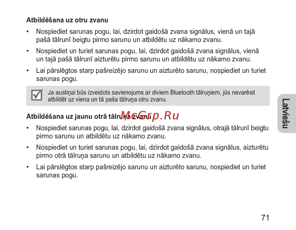 - Повторный набор последнего номера нажмите кнопку ответа на вызов чтобы набрать первый номер из списка последних вызовов того телефона который был подключен к гарнитуре последним p.18