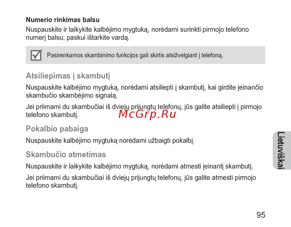 Pasirenkamos skambinimo funkcijos gali skirtis atsižvelgiant į telefoną.