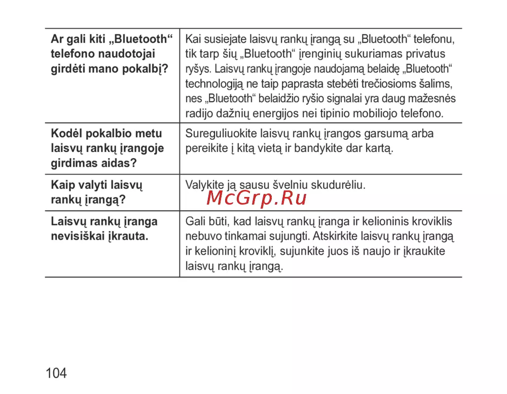 - Laisvų rankų įrangos susiejimas ir prijungimas p.96