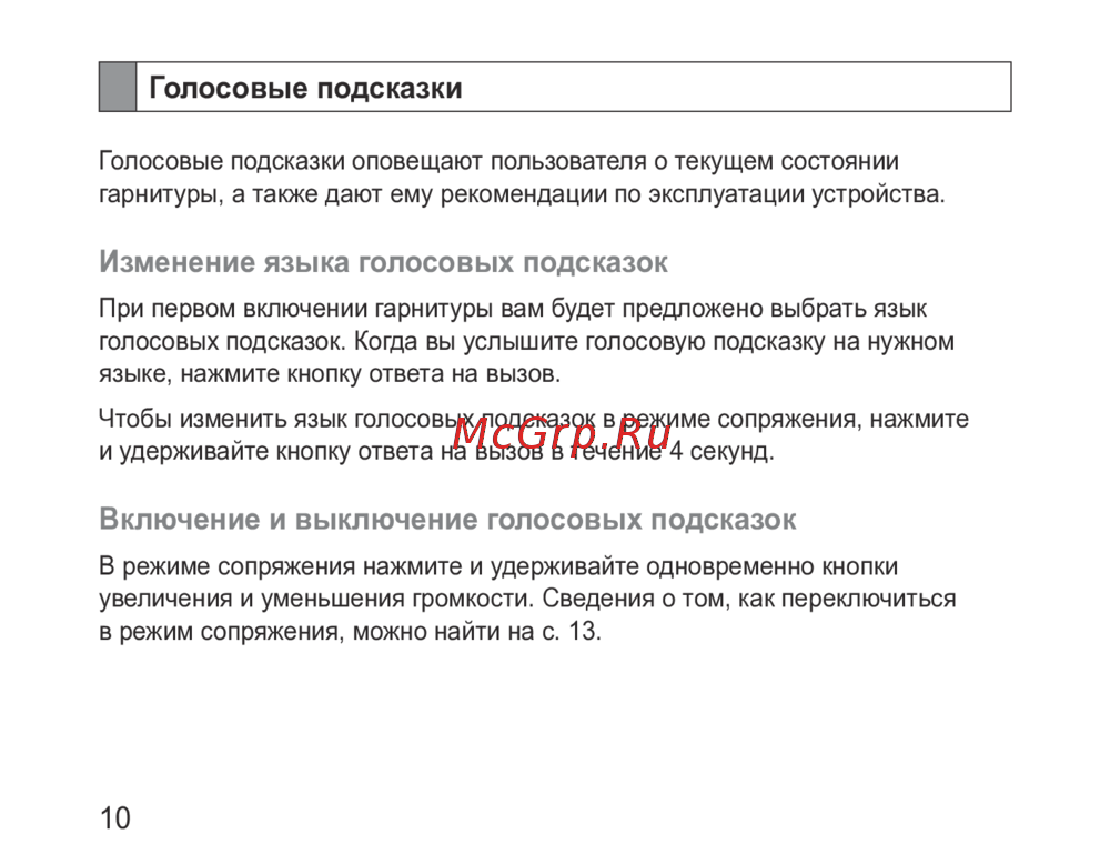 гарнитуры, а также дают ему рекомендации по эксплуатации устройства.