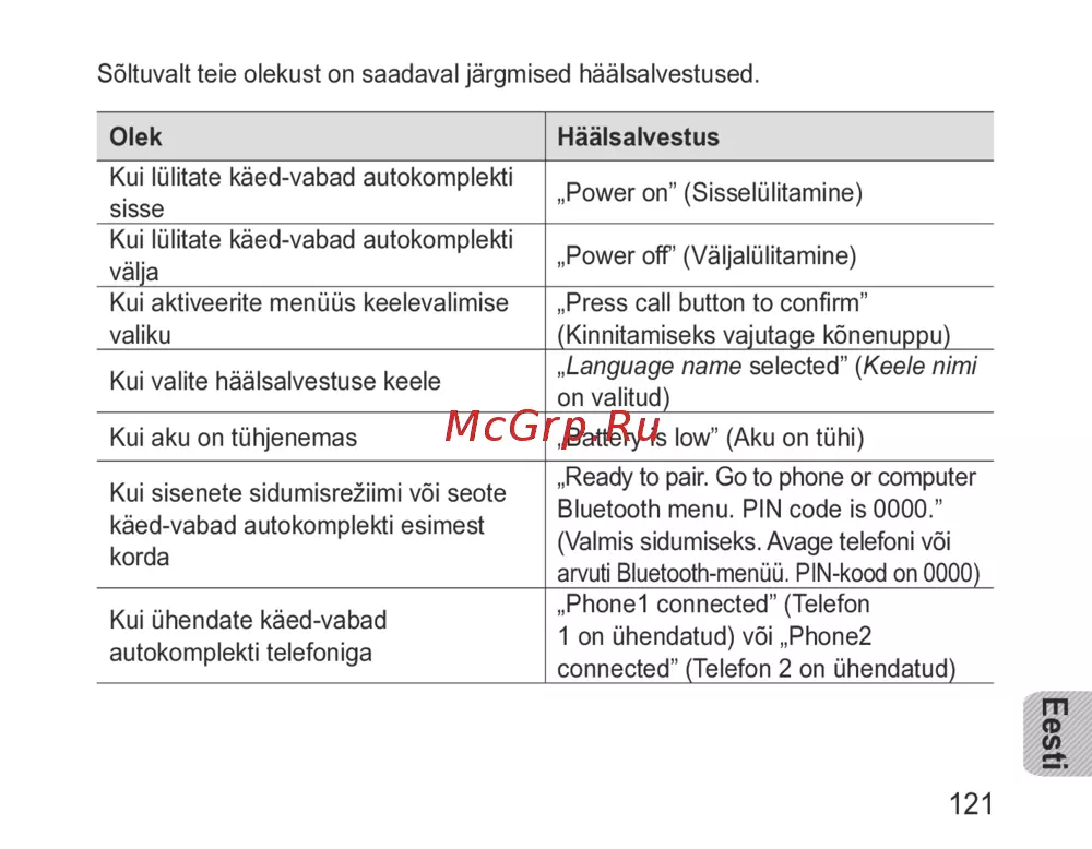 - Käed vabad autokomplekti kasutamine p.121