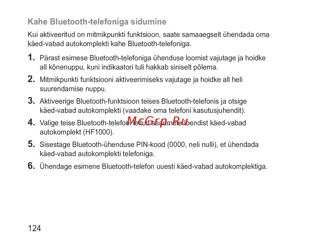 - Käed vabad autokomplekti sidumine ja ühenduse loomine p.124