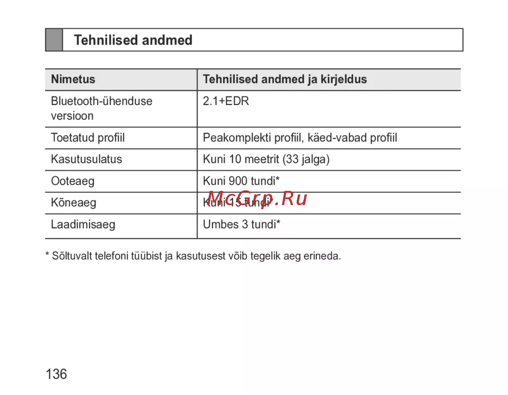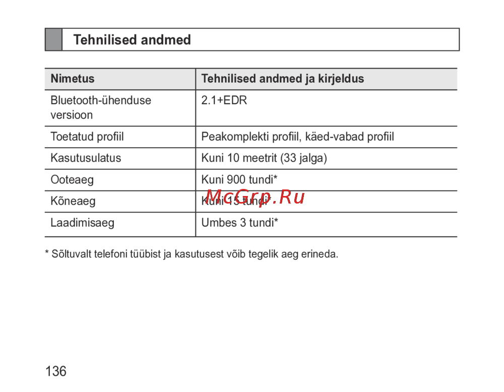 * Sõltuvalt telefoni tüübist ja kasutusest võib tegelik aeg erineda.