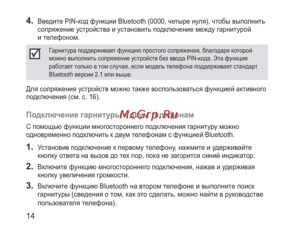 - Введите pin код функции bluetooth 0000 четыре нуля чтобы установить подключение между гарнитурой и телефоном p.17