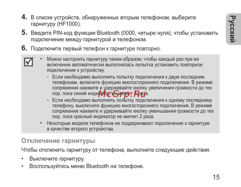 - Сопряжение гарнитуры и установка подключения p.15