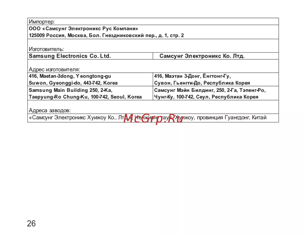 - Изготовитель samsung electronics co ltd самсунг электроникс ко лтд p.28