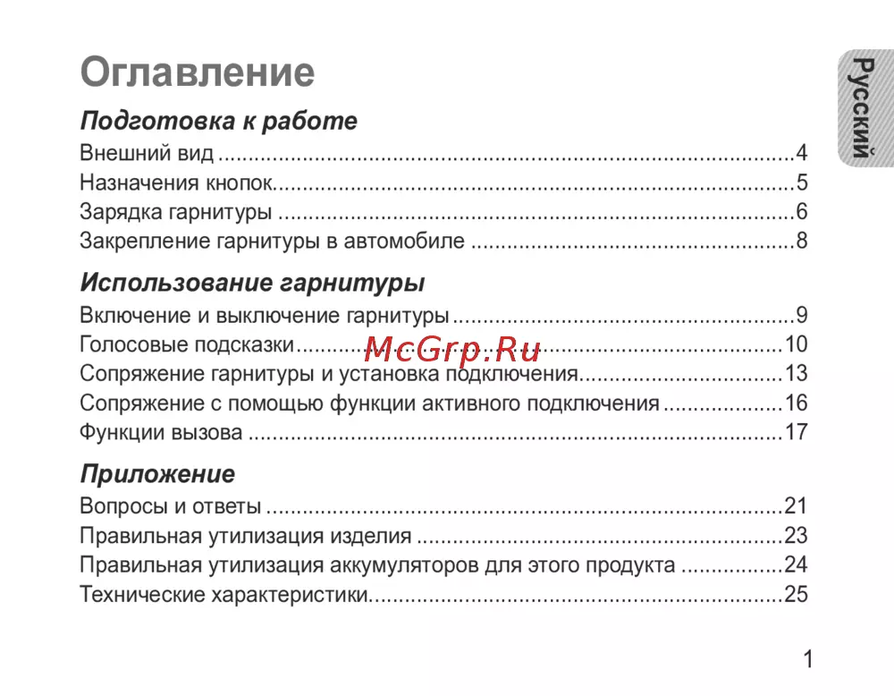 - Для правильного и безопасного пользования гарнитурой предварительно ознакомьтесь с мерами предосторожности p.5