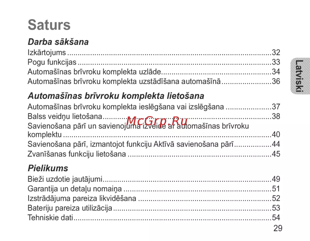 Automašīnas brīvroku komplekta uzlāde.....................................................34