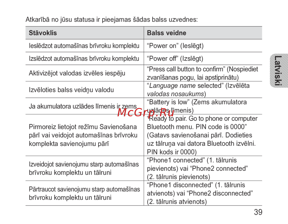 - Введите pin код функции bluetooth 0000 четыре нуля чтобы установить подключение между гарнитурой и телефоном p.17