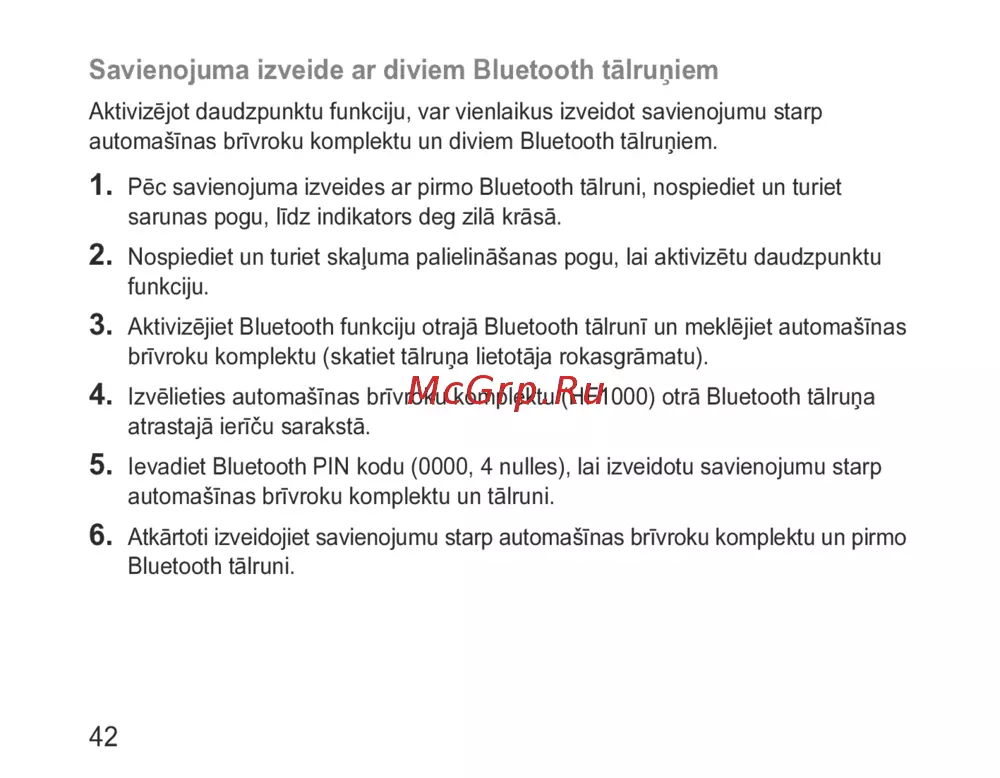 Pēc savienojuma izveides ar pirmo Bluetooth tālruni, nospiediet un turiet