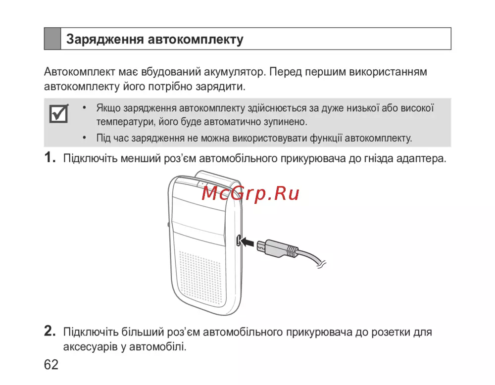 Samsung BHF1000 [64/140] Зарядження автокомплекту