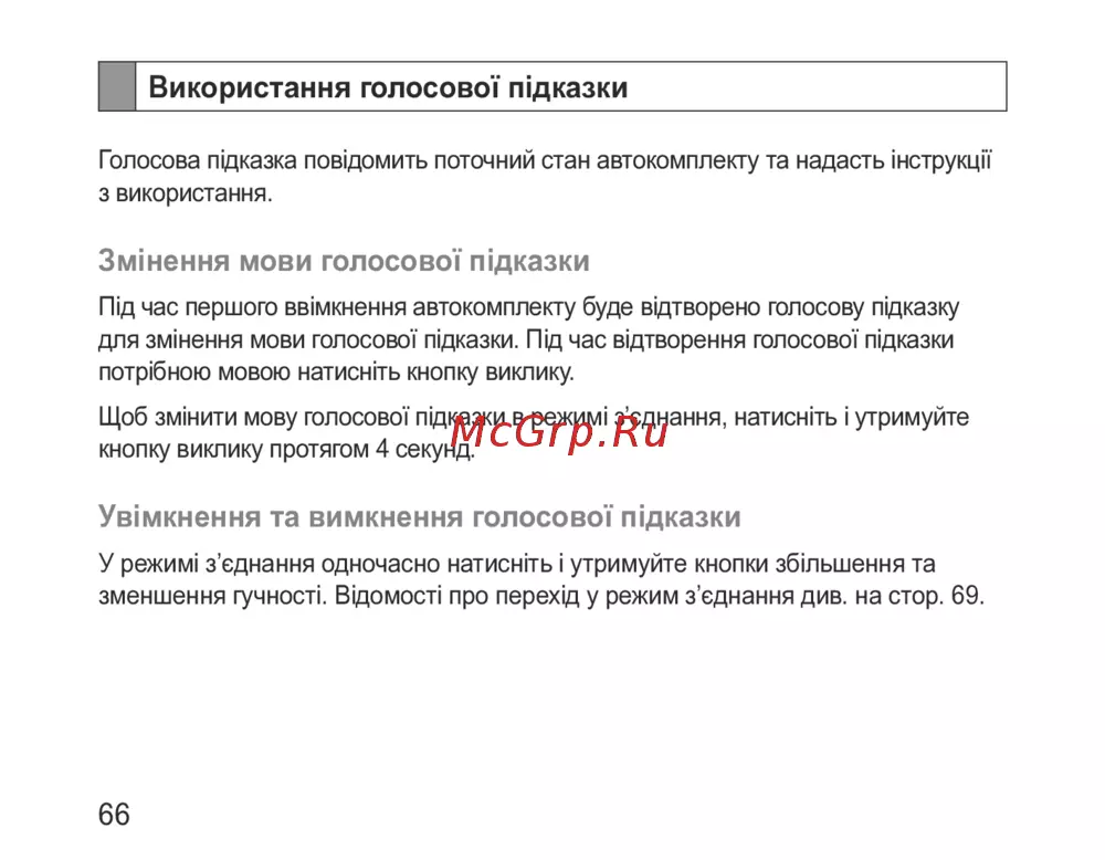 для змінення мови голосової підказки. Під час відтворення голосової підказки