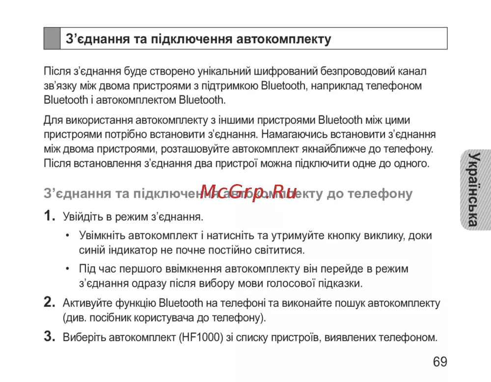 Для використання автокомплекту з іншими пристроями Bluetooth між цими
