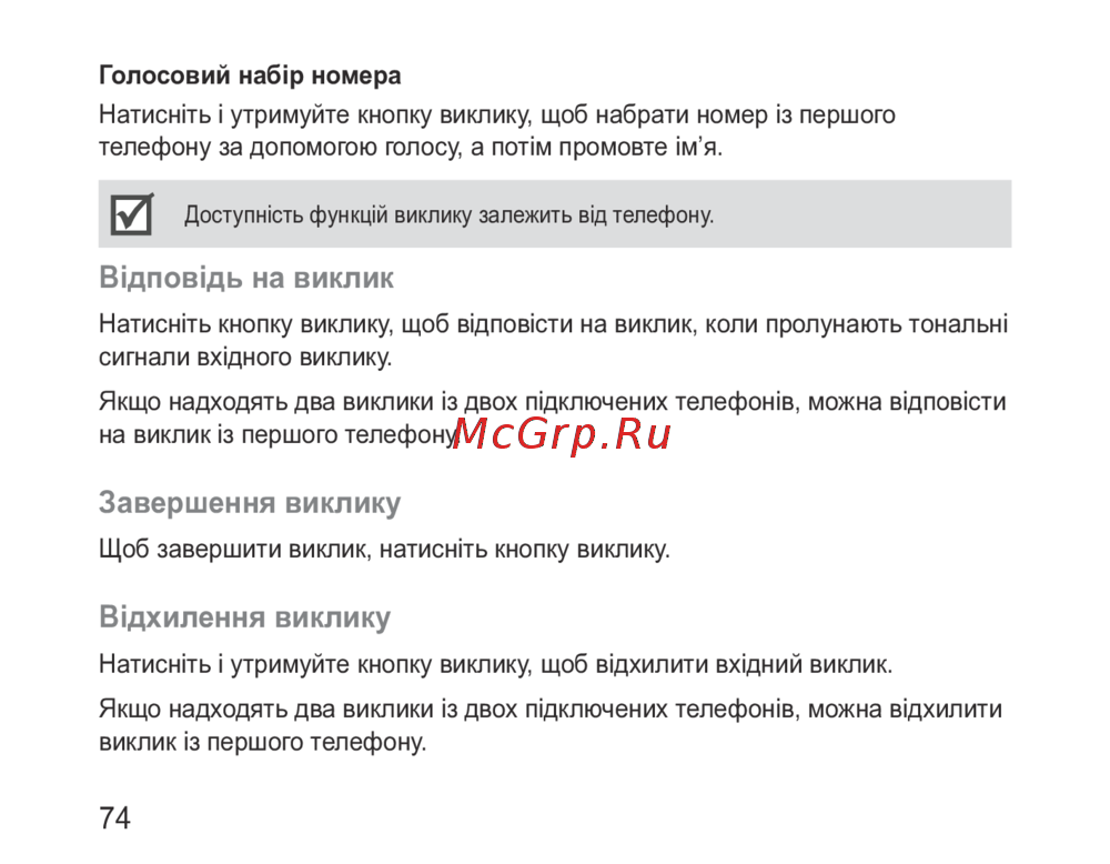 - Нажмите кнопку ответа на вызов чтобы выполнить вызов абонента номер которого сохранен последним в памяти телефона причем используется телефон который был подключен к гарнитуре последним p.19