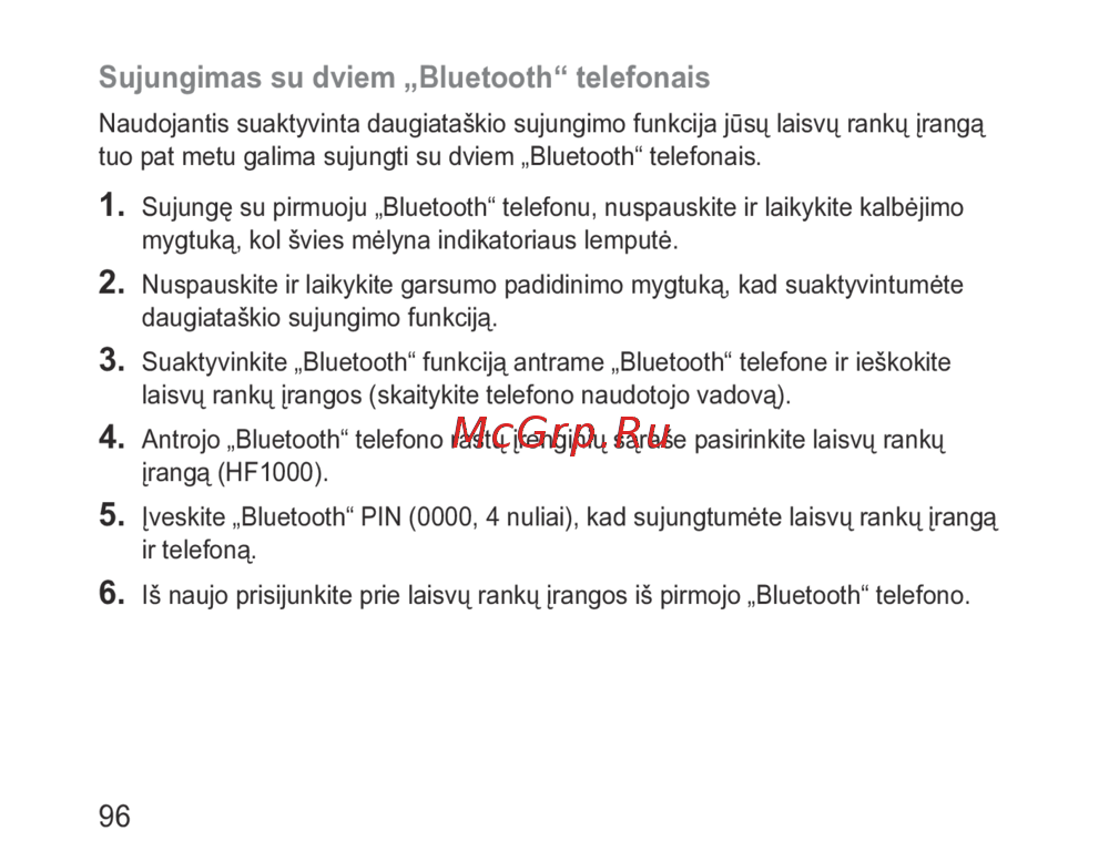 - Sujungimas su dviem bluetooth telefonais p.98