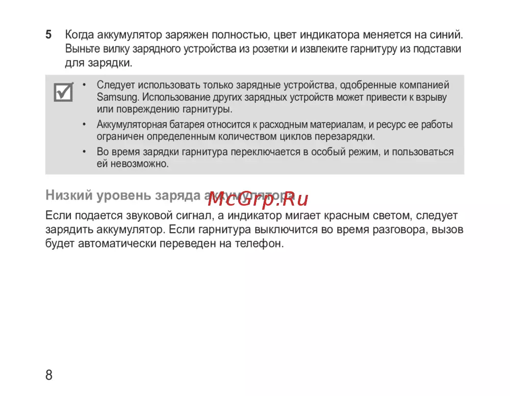 Samsung BHM3200 [11/135] Низкий уровень заряда аккумулятора