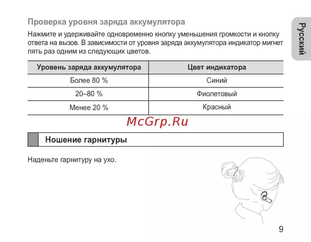 - Зарядка гарнитуры p.9