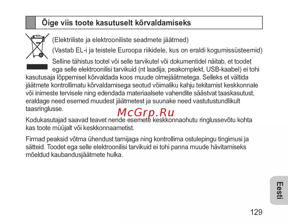- Õige viis toote kasutuselt kõrvaldamiseks p.132