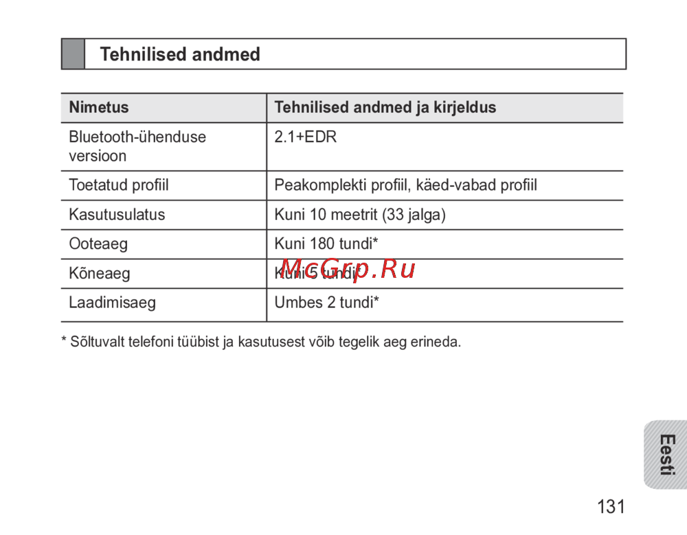 * Sõltuvalt telefoni tüübist ja kasutusest võib tegelik aeg erineda.