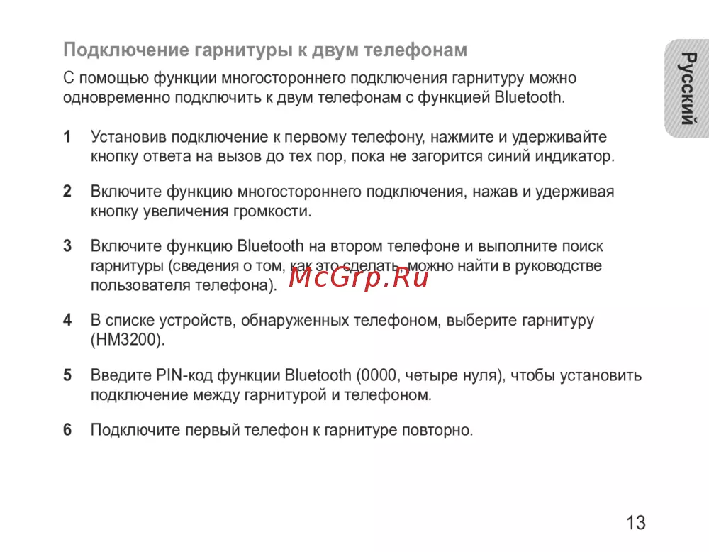- Гарнитура перейдет в режим активного подключения будет выполнен поиск телефона с функцией bluetooth в зоне действия сигнала и предпринята попытка подключения к нему p.19