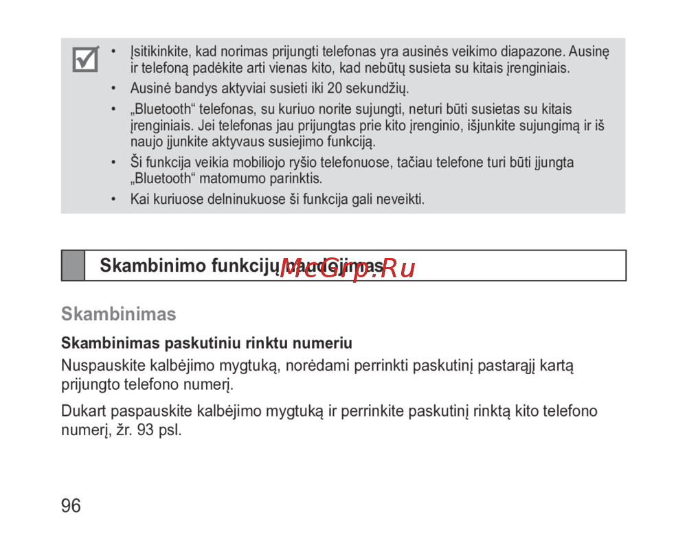 - Ausinės ir telefono susiejimas ir sujungimas p.95