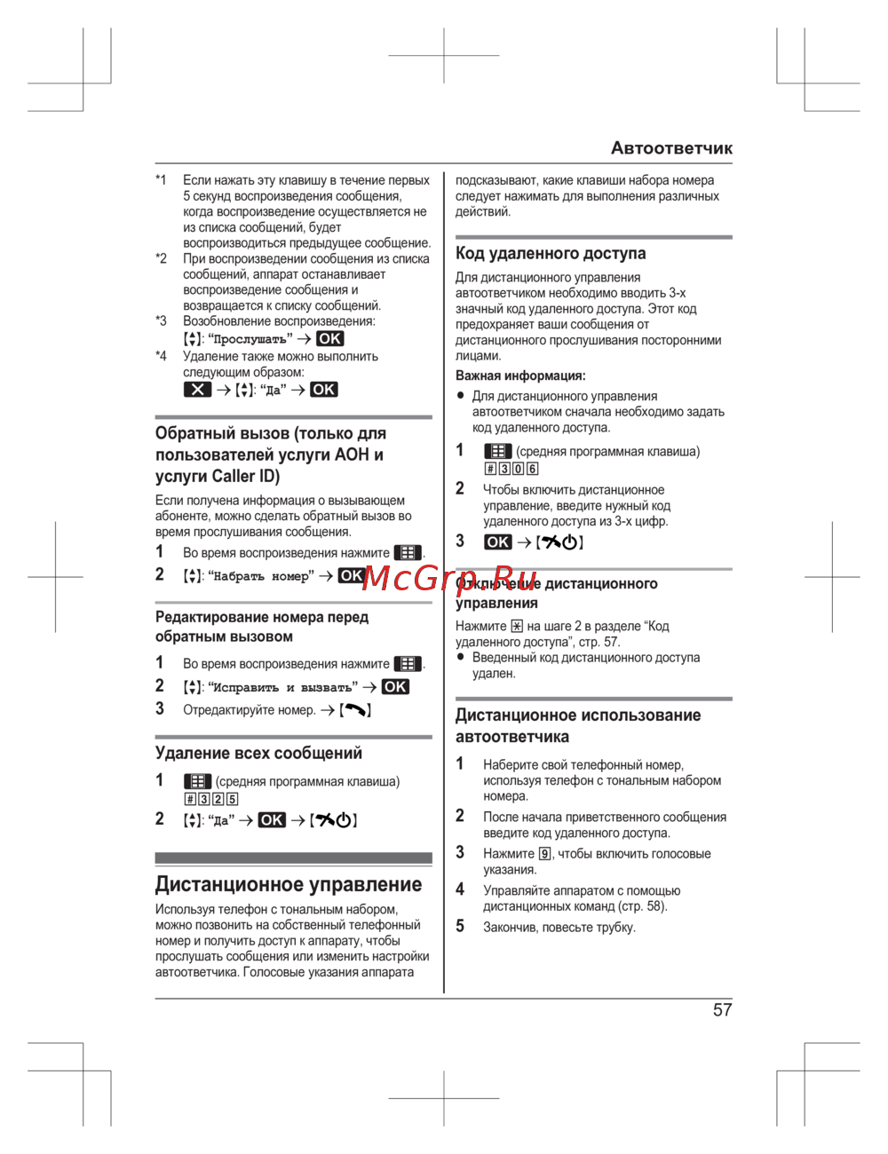 - Возврат к предварительно записанному приветственному сообщению p.55