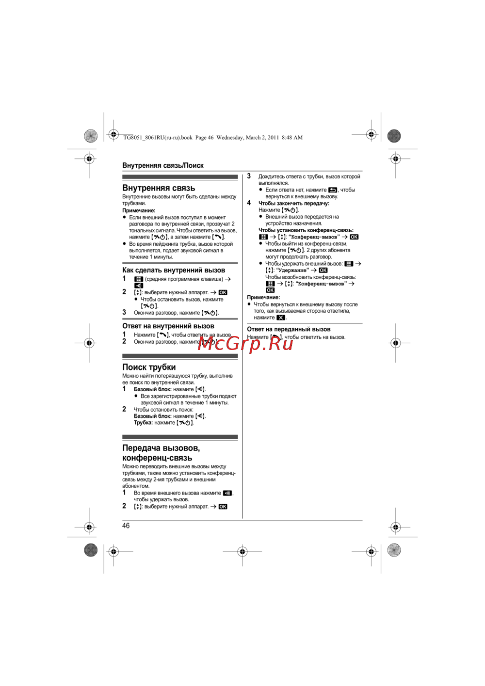 TG8051_8061RU(ru-ru).book Page 46 Wednesday, March 2, 2011 8:48 AM