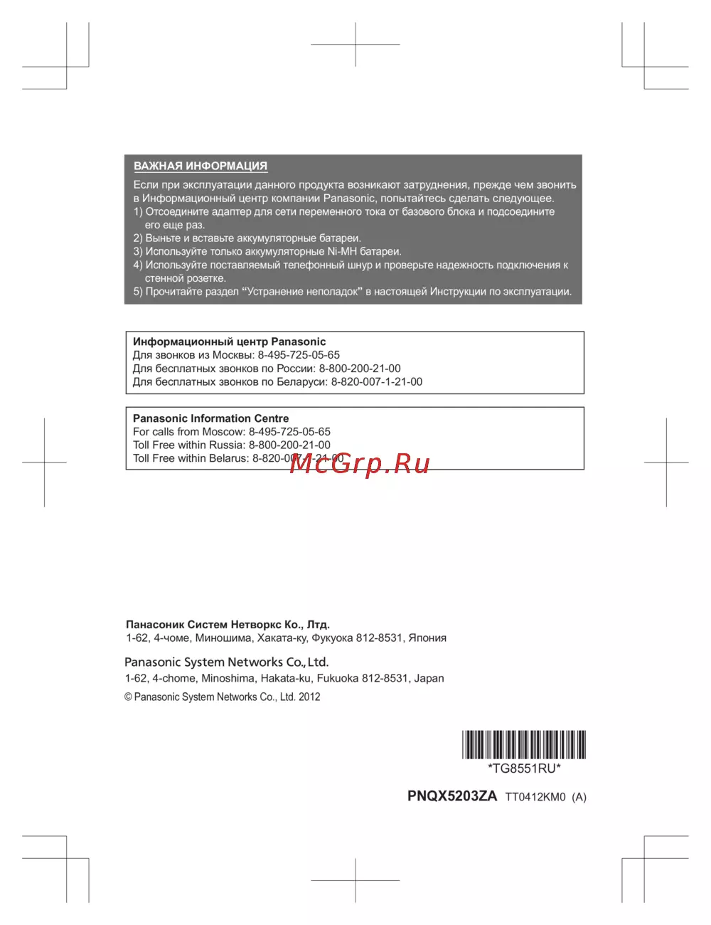 Panasonic KX-TG8551 RUWРуководство по эксплуатации -