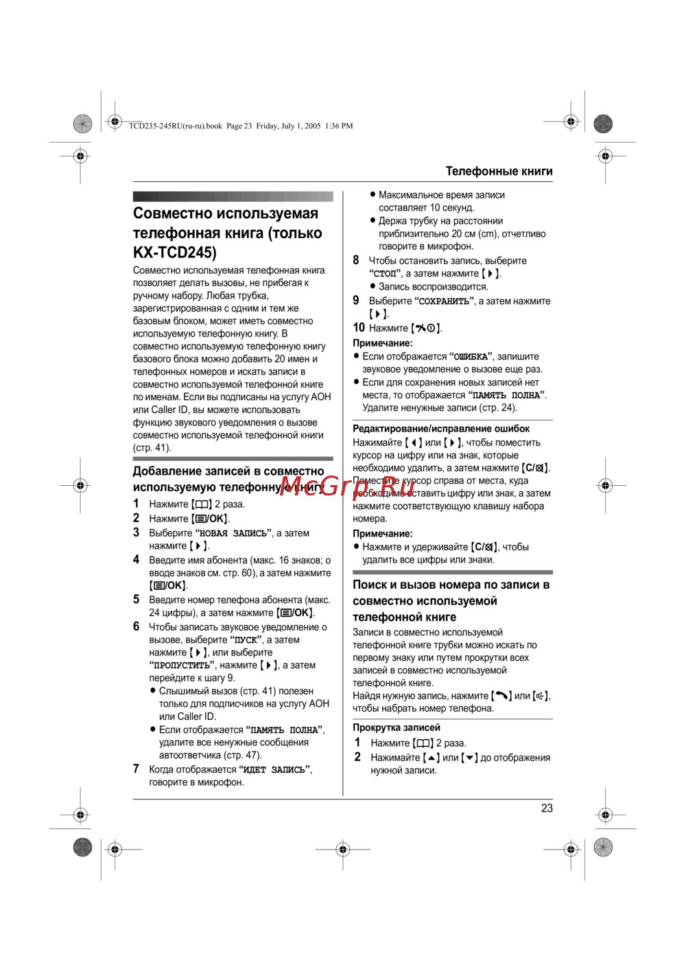 Panasonic KX-TCD245 [23/72] Телефонные книги