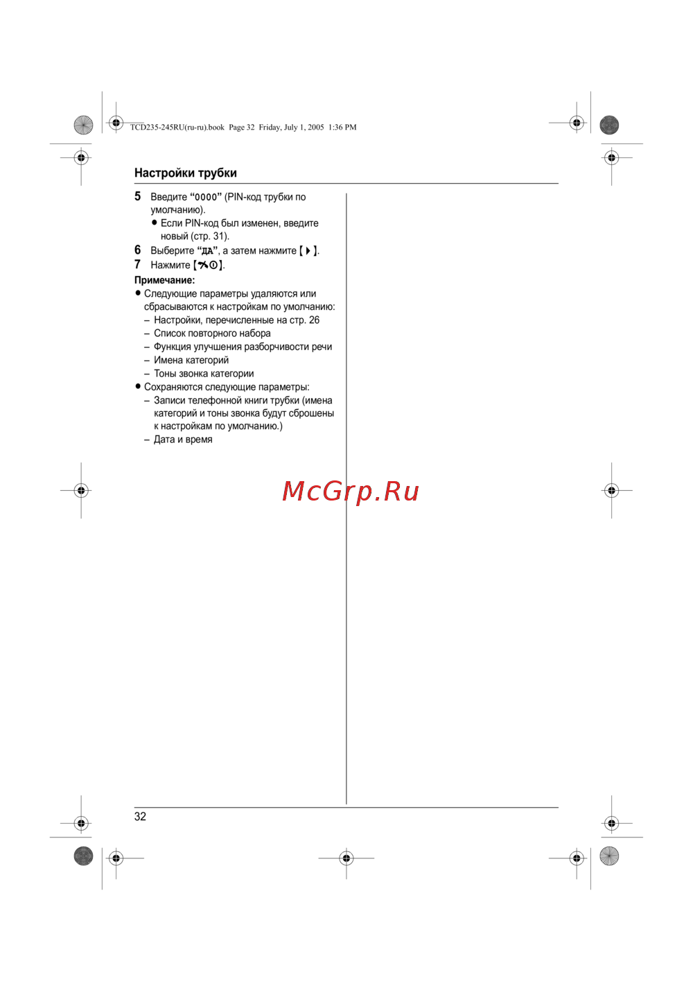 TCD235-245RU(ru-ru).book Page 32 Friday, July 1, 2005 1:36 PM