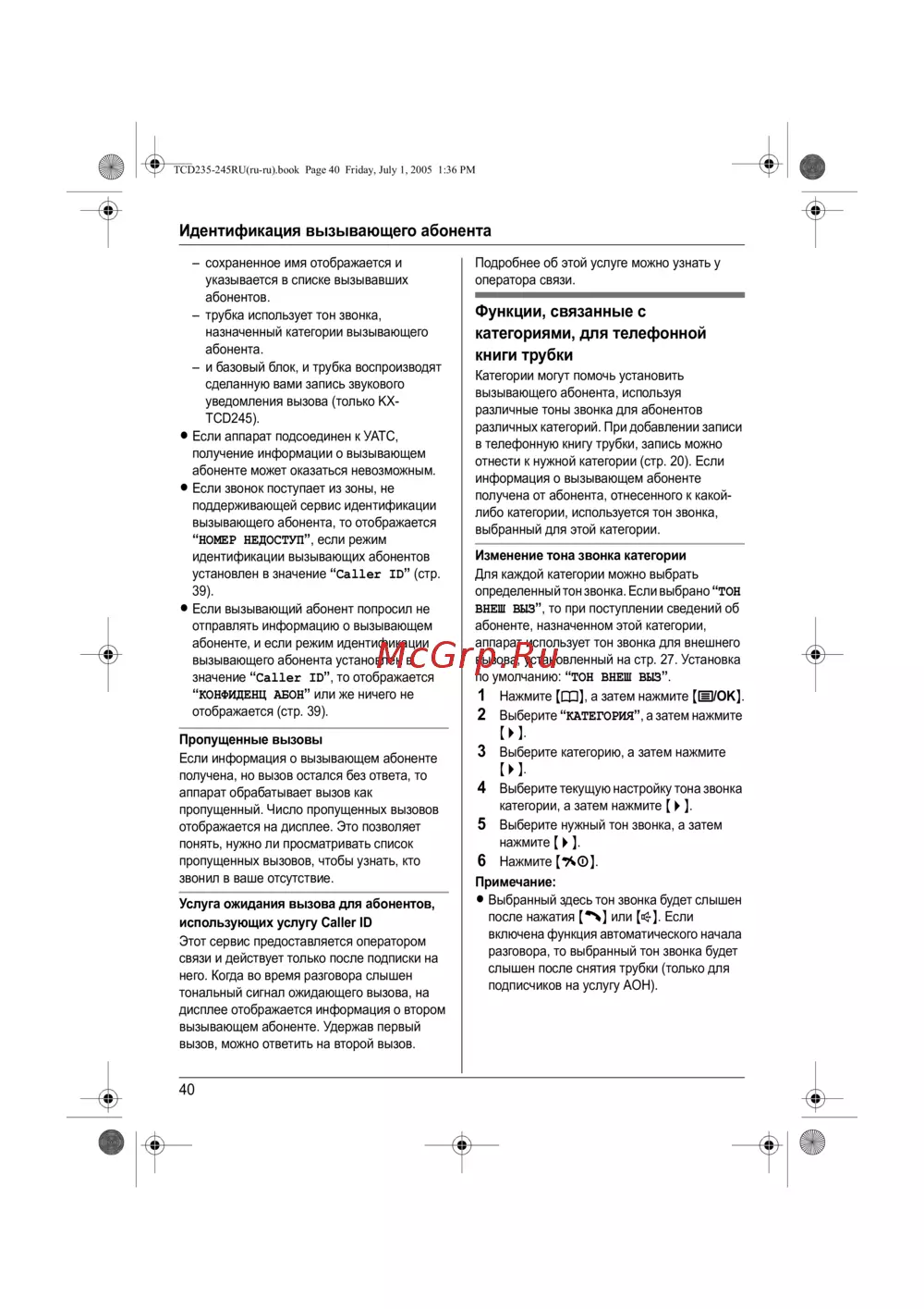 Panasonic KX-TCD245 [40/72] Услуга ожидания вызова для абонентов использующих услугу caller id